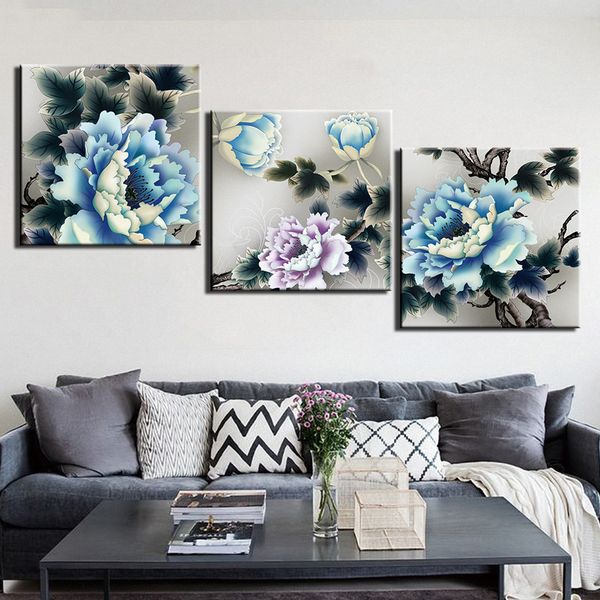 3 Piece Chinese Paintings Flowers Pictures Canvasart Deco