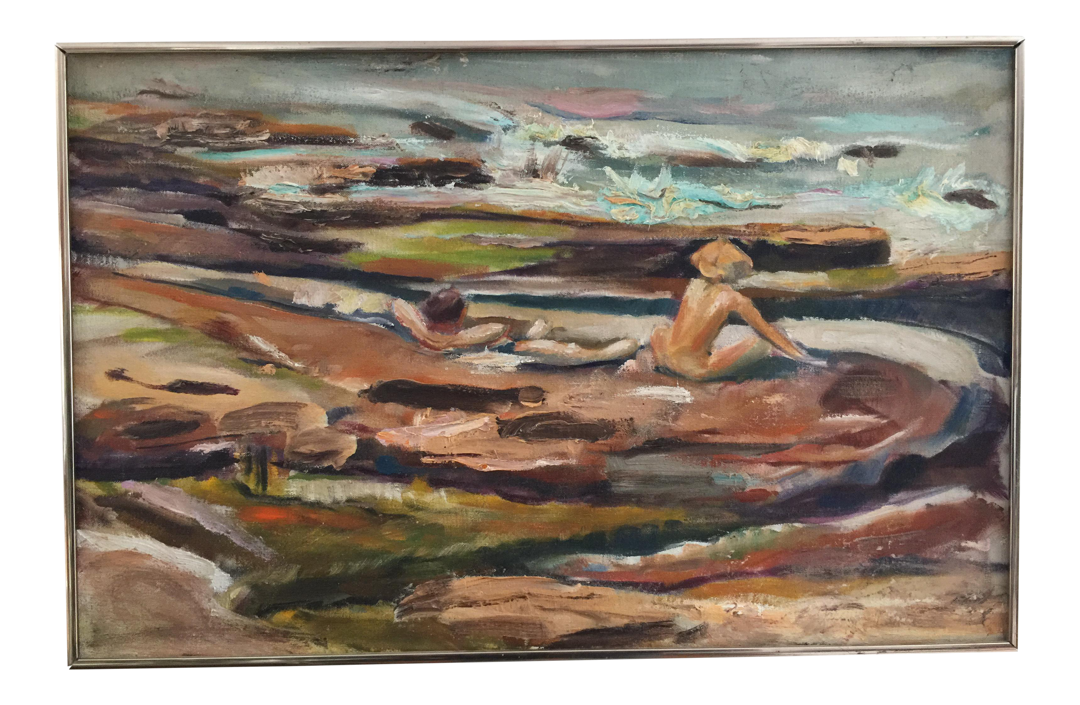 Mid Century Abstract Couple At Beach Oil Painting Chairish