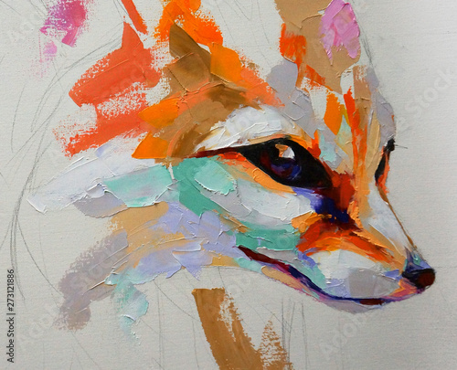 Oil Fox Portrait Painting In Multicolored Tones Conceptual