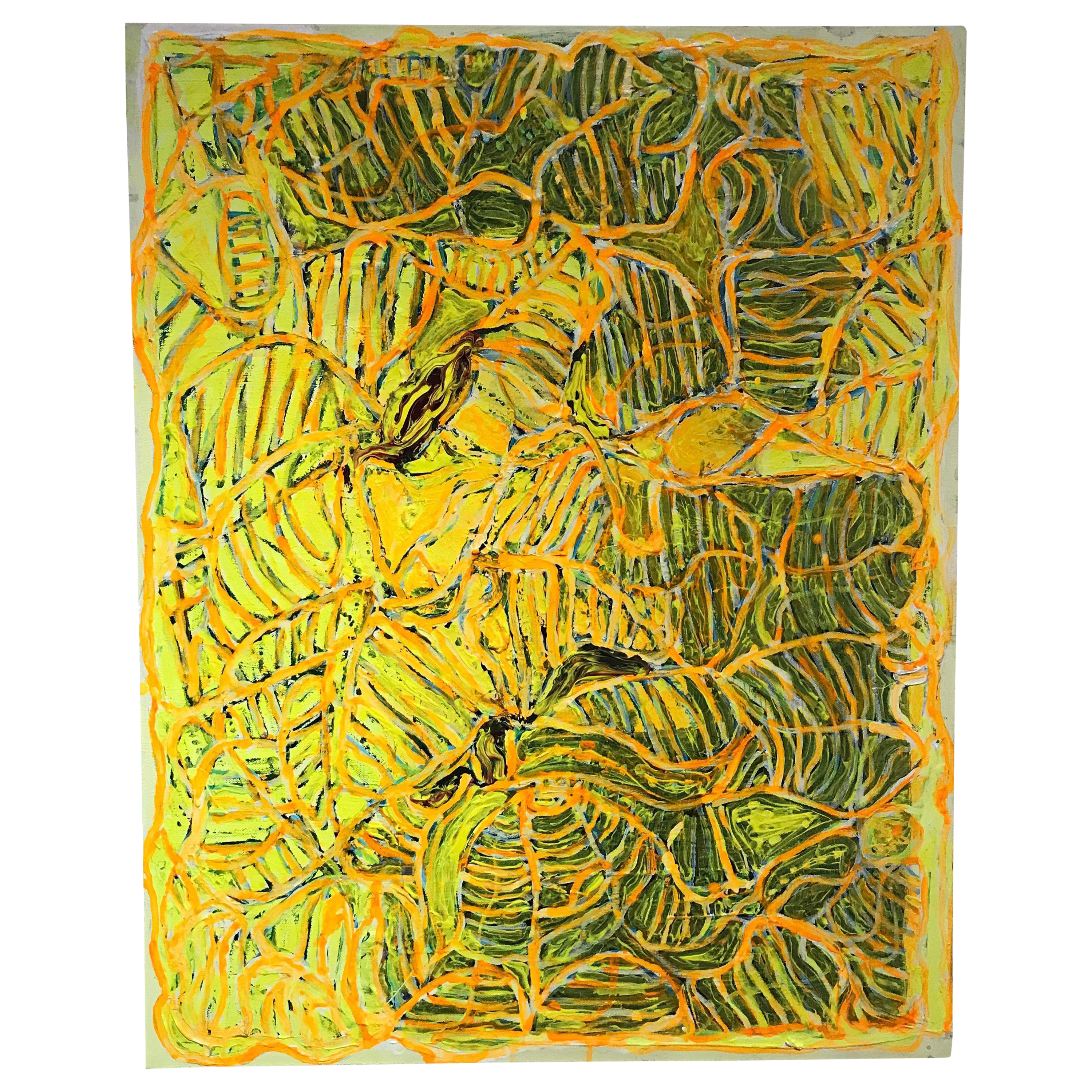 Original Abstract Painting Yellow Brown Green Vine Landscape