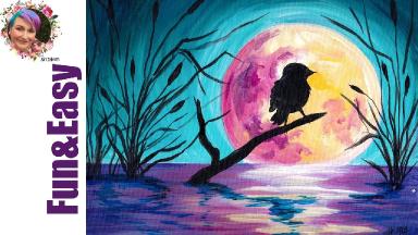 Moonlight Bird On A Branch Easy Acrylic Tutorial Live Stream