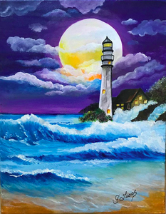 Lighthouse Acrylic Painting On 16 X 20 Stretched Canvas Unframed