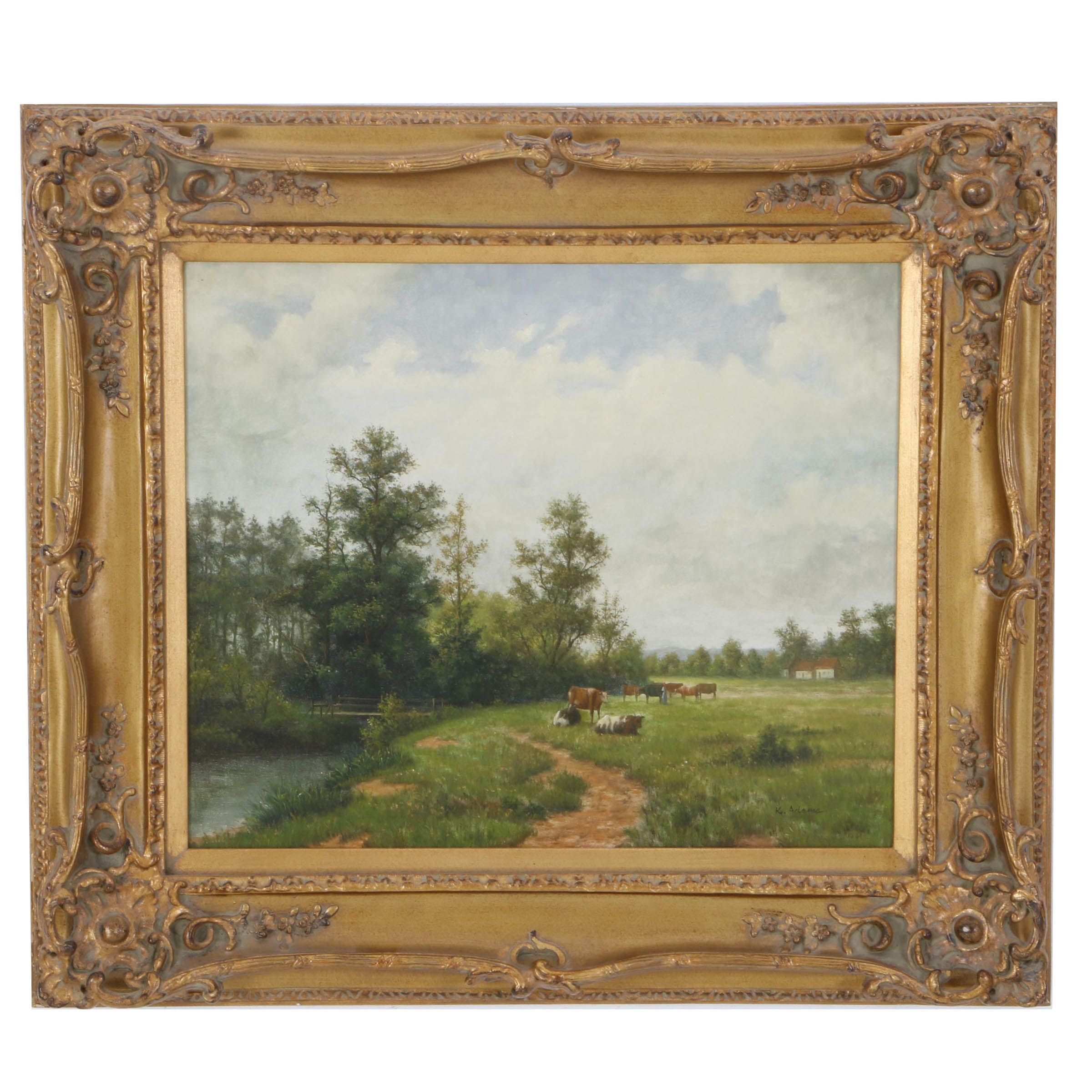 K Adams Oil Painting Of Pastoral Scene Ebth